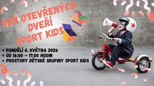 SPORT KIDS vás zve na Den otevřených dveří od 16:00 do 17:00 hodin do prostor dětské skupiny SPORT KIDS.
