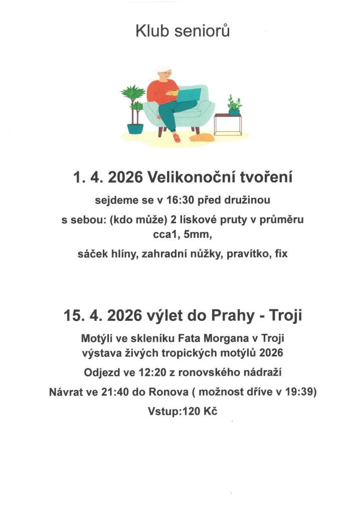 Klub seniorů program na duben 2026